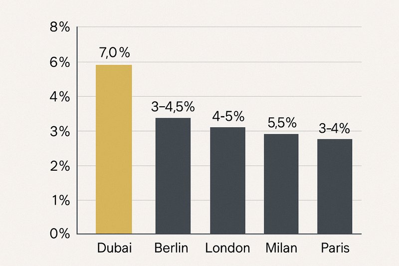 Takeaway: Even top European markets struggle to reach the mid-single-digit yields that are standard in Dubai.